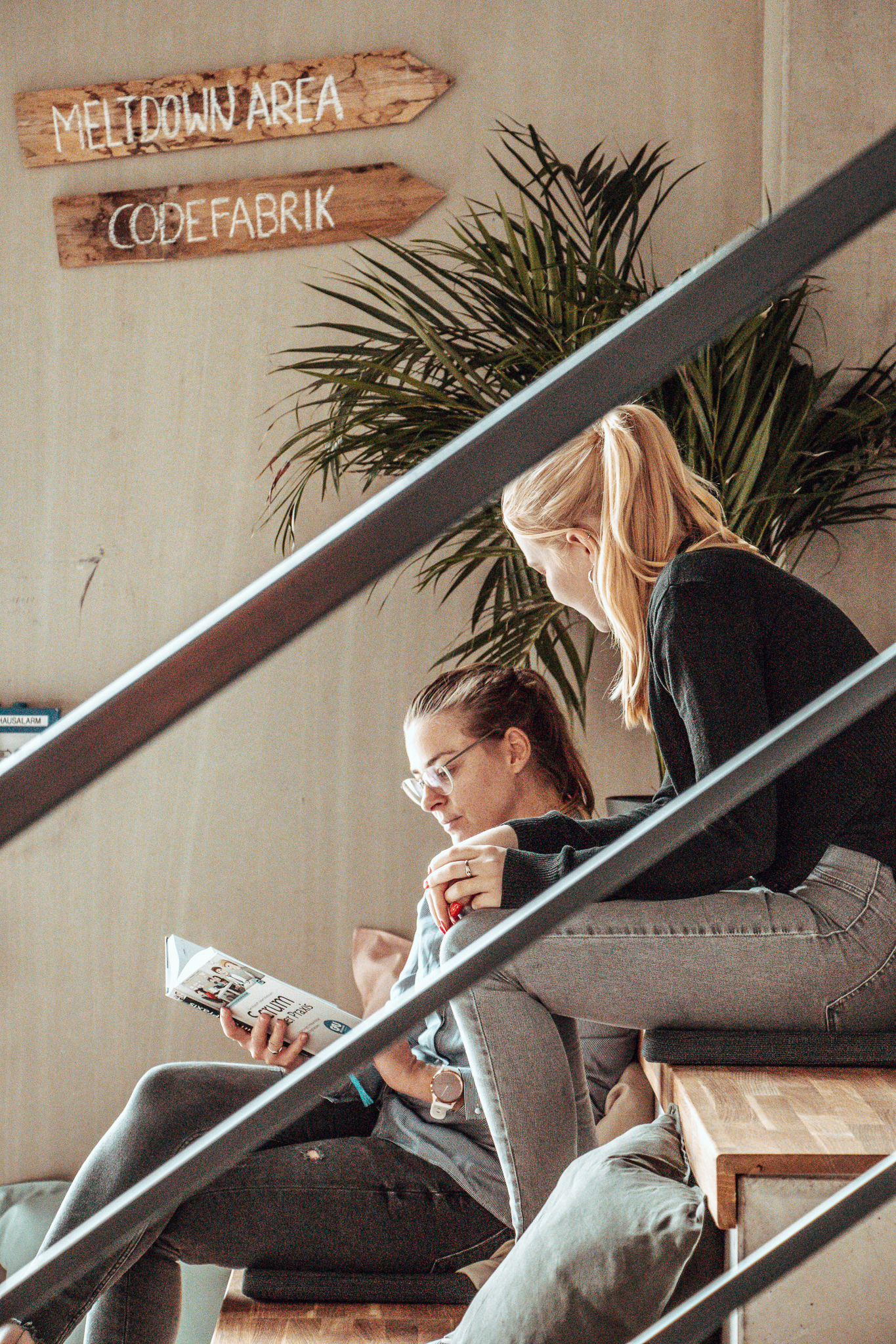 Eine breite Treppe zum Obergeschoss dient gleichzeitig als Tribüne, die beste Aussicht auf Talks und Vorträge bietet und auch perfekt für die Interaktiv Movie Night genutzt werden kann.